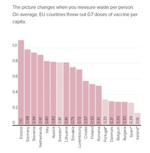 Calculations based on available data show that EU countries have discarded an average of 0.7 jabs for every member of their population. Top of the scale is Estonia, which binned more than one dose per inhabitant, followed closely by Germany, which also threw away the largest raw volume of jabs.