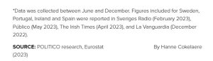 POLITICO’s calculations are based on numbers from 19 European countries — 15 that supplied us with direct figures, and four where volumes were reported in local media. Some figures date from as recently as this month; the oldest come from December 2022.