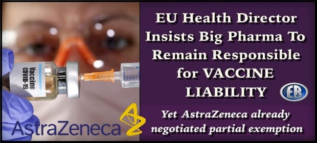 ER Editor: The report below takes as gospel the words of Sandra Gallina, the Deputy Director General of Health and Food Safety for the EU, that Big Pharma companies will be held liable for covid vaccine side effects. The Reuters report, which the article below quotes, begins in the following way. Our emphasis shows that liability will be, to some unspecified degree, shared: