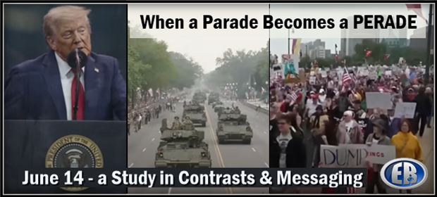 ER Editor: Yesterday, June 14th, was Trump’s 79th birthday, with a parade in DC celebrating the US Army’s 250th anniversary. And the day of ‘No Kings’ protests in various cities by the woke, globalist Left, with even a small march on Mar-a-Lago. Radical leftist, Vance Luther Boelter, also murdered Minnesota Democrat Representative Melissa Hortman and her husband, allegedly, as well as State Senator John Hoffman and his wife. Notice the Study in Contrasts for this day. There are no coincidences. Theater, people. Boelter had ‘No Kings’ flyers in his car according to police —