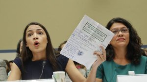 Rep. Alexandria Ocasio-Cortez testified Friday about living conditions for people detained at the border. Rep. Rashida Tlaib was at her side. Photo: Pablo Martinez Monsivais/AP