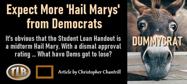 It’s pretty obvious to me that the Biden Student Loan Handout is a midterm Hail Mary. With a 40 percent approval rating, why wouldn’t the president throw some free stuff at the gender studies graduate vote? What has he got to lose?