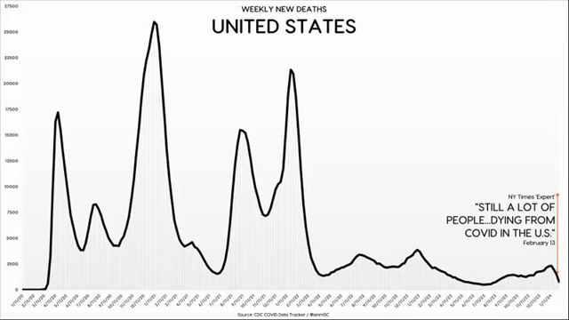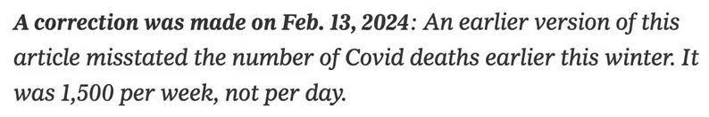 Oh, and the best part? The Times initially, and incorrectly, claimed that there were 1,500 people dying of Covid per day. In 2024.