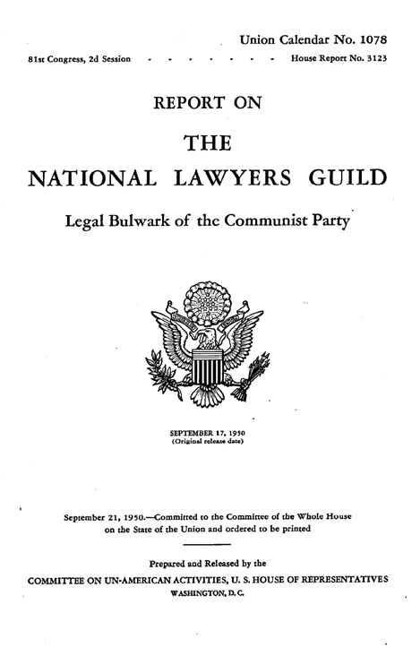 81st Congress REPORT ON NATIONAL LAWYERS GUILD – THE BULWARK OF THE COMMUNIST PARTY (NWO) ~ 52 page document