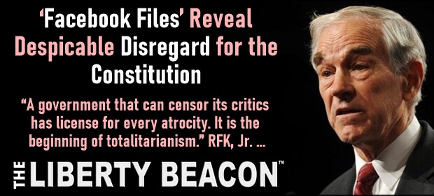 This article (‘Facebook Files’ Reveal Despicable Disregard for the Constitution) was originally created and published by the Ron Paul Institute and is republished with permission and attribution to the author Ron Paul and ronpaulinstitute.org.
