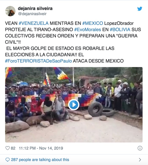 Many social activists and anti-Morales protesters claim that Venezuela and Mexico are attempting to foment civil war in Bolivia. There are also suspicions that the influential leftist Sao Paulo Forum may be involved.