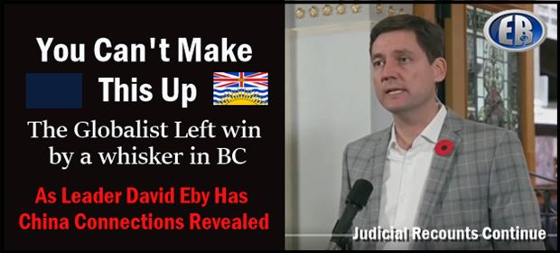 ER Editor: The globalist-left NDP may have squeaked through by just ONE seat after days of a recount (hmmm) but leader and incumbent premier David Eby has just had his Chinese connections outed. A recipe for citizen outrage, n’est-ce pas? Tweets.