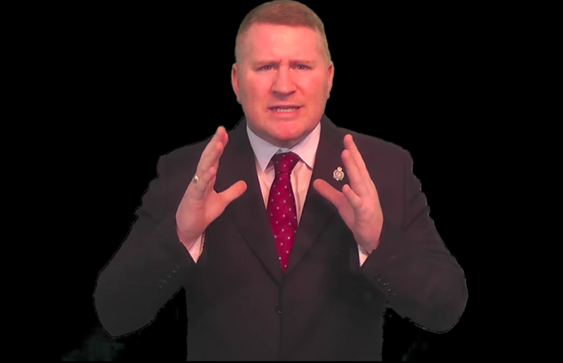 Over dramatic music and photos of political figures including Prime Minister Theresa May, Labour leader Jeremy Corbyn and former London mayor Ken Livingstone, Golding promised “leftists” they would meet their “miserable end at the hands of the Britain First movement.” He spoke of his “hatred for traitors,” and promised an “unceasing war against the establishment.”