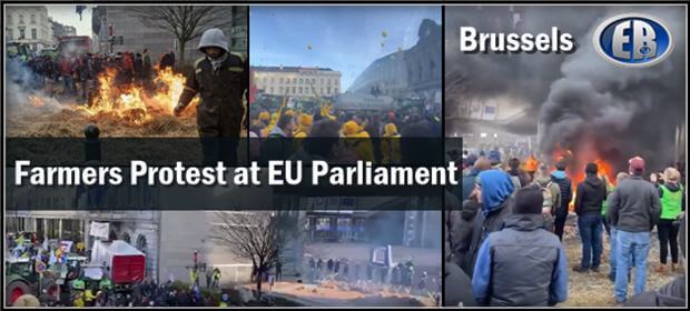 A crowd of furious farmers picketed the EU Parliament building in Brussels on Thursday to protest environmental regulations and the threat to their livelihoods posed by cheap Ukrainian imports. The protesters hurled stones, eggs, and abuse at the bureaucrats behind police lines.