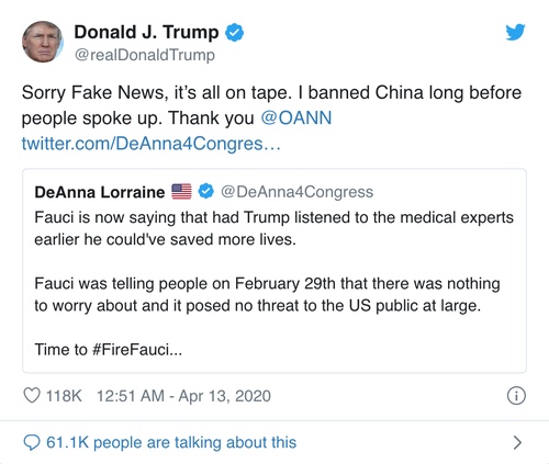 Meanwhile, Fauci keeps trying to upstage Trump, thinking he could continue to command the heights because he’s the chosen expert.