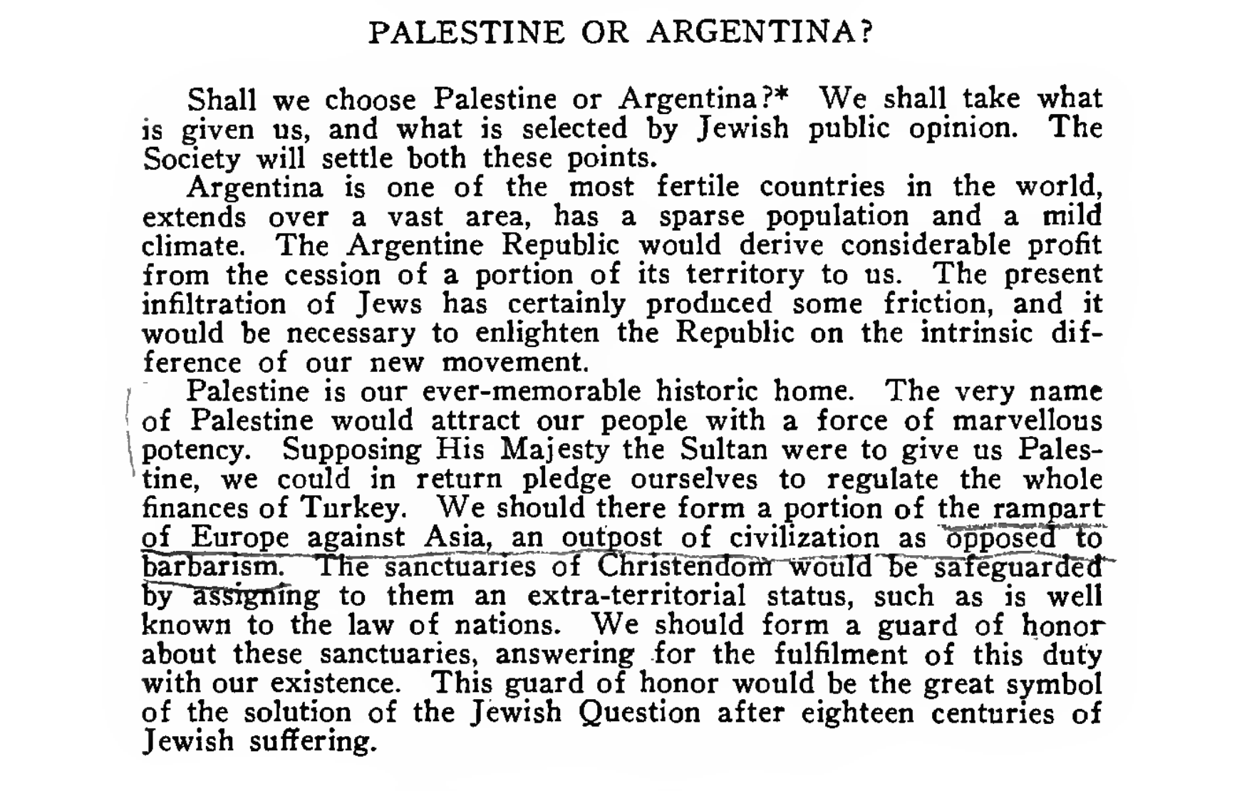 IMAGE: Extract from Theodor Herzl’s pamphlet “A Jewish State,” first published in April 1896 (Source: US Archive)