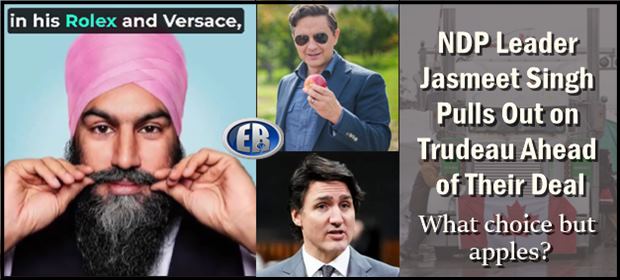 ER Editor: A MSM report from Canada’s Globe and Mail on Liberal Party staffers and others stepping down. A reminder that NDP (globalist left) leader Jagmeet Singh abruptly called off his planned 3-year arrangement to support Trudeau’s Liberal Party in Parliament come what may up to 2025. This arrangement began in early 2022 when the truckers were getting going. See —