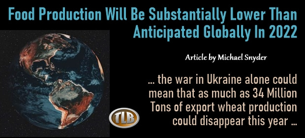 The above article (Food Production Is Going To Be Substantially Lower Than Anticipated All Over The Globe In 2022) was originally created and published by The Economic Collapse and is republished here with permission and attribution to author and The Economic Collapse.