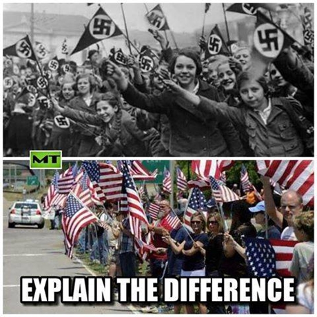The UNITED STATES war machine WAR POWERS FLAG which is rightly despised by much of the planet is at its core as Un-American as the one being waived by the mind controlled Goebels programmed slaves in the top of the picture. I say this for several reasons some of which I have explained.