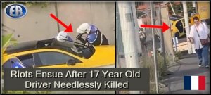 ER Editor: Another story (we published this yesterday) needs to be put out on the 17 year old French kid who got pulled over by two motorbike cops and fatally shot by one of them in a small street leading to a train station Tuesday morning. The event, both before and after, has been captured by several witnesses, which have been compiled into a tweeted video below. It’s worth watching. The police actually used language where they threatened to shoot the kid while his car was stationery and posing no threat to them. It’s not a huge surprise that the young man got scared and took off. But barely had his acceleration started than the cop shot him in the chest. So riots have broken out across France, which is the thrust of today’s news stories.