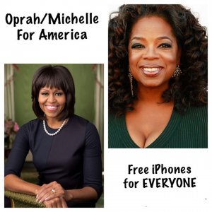 They want free iPhones for everyone. Hey! Run Oprah! Make Michelle Obama her running mate. Everyone loves Oprah, and Michelle will be bringing Obama back. The perfect SnowFlake ticket. Because Kamala Harris is just a tar baby!