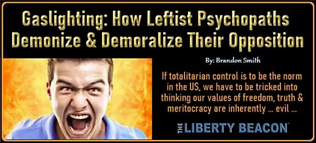 This article (Gaslighting: How Leftist Psychopaths Demonize And Demoralize Their Opposition) was originally created and published by ALT-MARKET and is republished here under “Fair Use” (see disclaimer below) with attribution to author Brandon Smith and alt-market.us.
