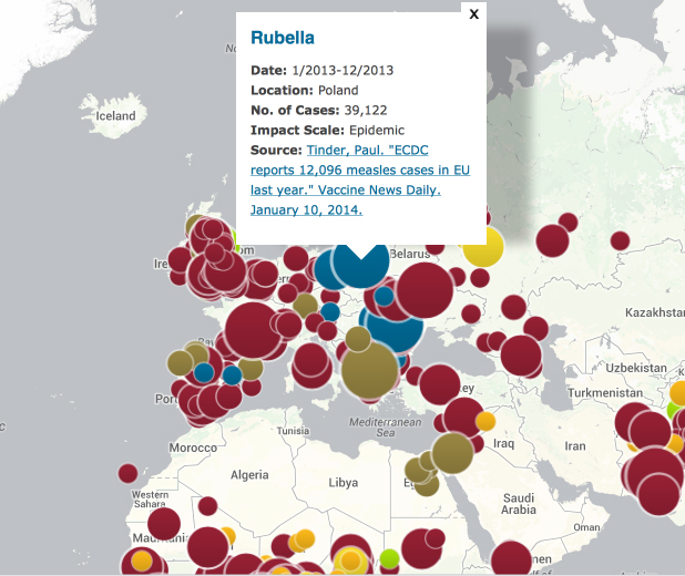 “visually plots global outbreaks of measles, mumps, whooping cough, polio,