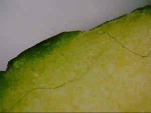 Thank you to Nano Researcher Tony Pantalleresco for identifying the synthetic biology on this apple. This apple is what the supermarkets deem ‘organic’. This is a misnomer. We eat nothing organic. Our soils, water and air are contaminated by the chemicals, biologicals and nano technology from chemtrails/geoengineering. Our food stuffs are further degraded by glyphosates and irradiated, as per the Codex Alimentarius food standard.
