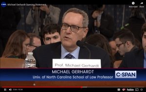 Obviously, Gerhardt and I have substantial disagreements. Gerhardt supported the articles of impeachment based on bribery and other crimes. I opposed those four articles, which were ultimately rejected by the Committee. The Committee went forward with the two articles that I said would be legitimate but remained unproven. We later disagreed when Gerhardt declared that this impeachment was the first time that the White House closely coordinated with his own party on the handling of the impeachment trial. Those however were academic differences over the history and interpretation of prior presidential impeachment cases.