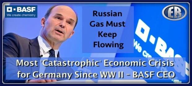 CEO of Germany’s multinational BASF SE, the world’s largest chemical producer, has warned that curbing or cutting off energy imports from Russia would bring into doubt the continued existence of small and medium-sized energy companies, and further would likely spiral Germany into its most “catastrophic” economic crisis going back to the end of World War 2.