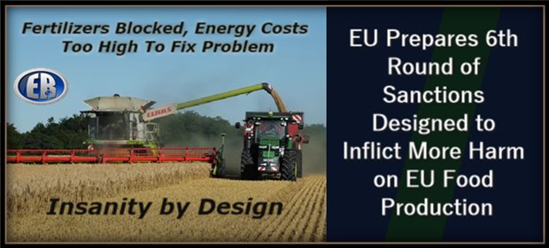 Boosting local fertiliser production in the EU and elsewhere in hopes of reducing prices is also scheduled to face challenges posed by western sanctions, as manufacturing requires large power consumption and cheap energy sources, both areas which have been impacted by the Ukraine-related measures. (ER: the EU crowd have all bases covered)
