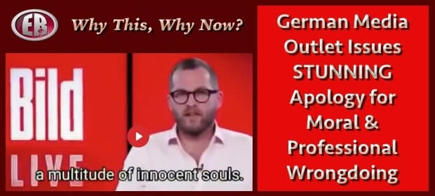 ER Editor: Why this, why now? We’re curious as to what this apology, ostensibly to the children of Germany who wouldn’t be watching this anyway, portends. Do we have reason for optimism? Are they clearing their consciences publicly before the pitchforks are branded against them? Do they know the jig is up?