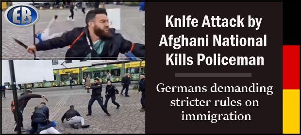 Germans demand that their government restricts migration to prevent further attacks after an Afghan knifeman killed a police officer and stabbed five others at a political rally
