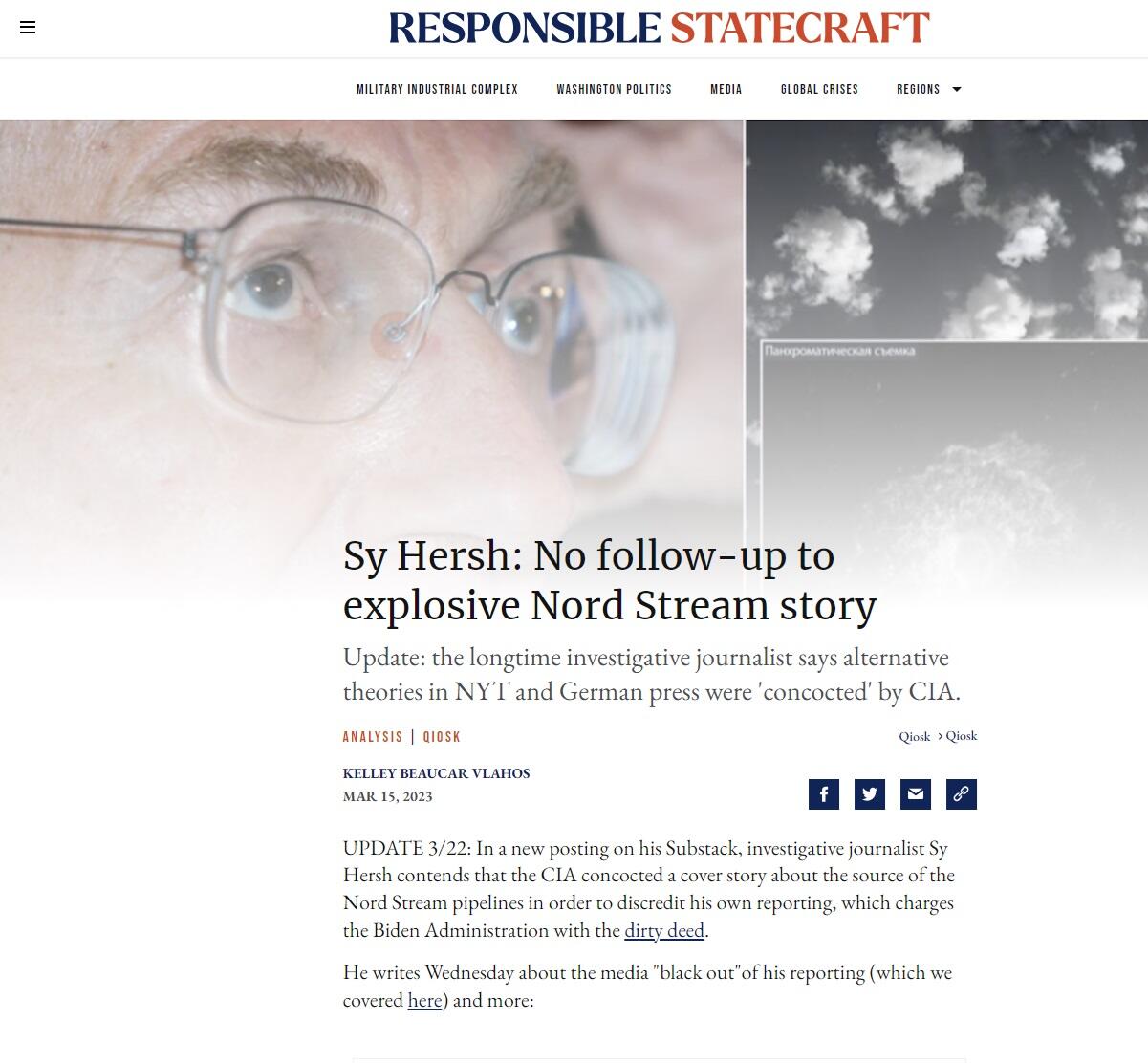 Longtime investigative journalist Seymour Hersh says alternative NS2 sabotage theories in NYT and German press were ‘concocted’ by CIA….