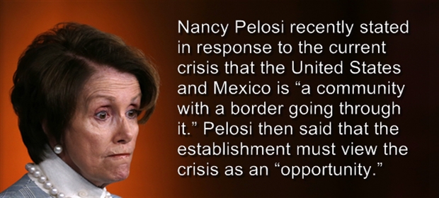 The spectacle of tens of thousands of “unaccompanied minors” is a “teaching experience” that globalist run media is using to manipulate public opinion. Congresswoman Nancy Pelosi recently stated in response to the current crisis that the United States and Mexico is “a community with a border going through it.” Pelosi then said that the establishment must view the crisis as an “opportunity.”