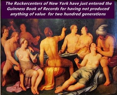 One family for instance, the Rockercenters of New York, have just entered the Guinness Book of Records for having not produced anything of value to man or beast for two hundred unbroken generations stretching back to the time of the Pharaoh Aakheperre Pasebakhenniut I. Yet a visit to any one of their three hundred and twenty nine hovels scattered across the Northern hemisphere reveals that they have nevertheless enjoyed a lavish lifestyle at public expense, raising large unruly families whose children grow up to worship Satan or enter criminal careers such as politics, banking and corporate piracy.