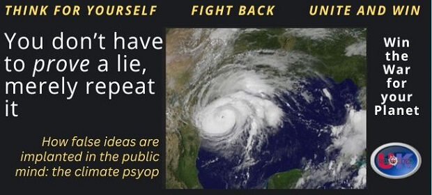 The psyop designed to instill fear of the climate in order to get people to accept political suppression resolves down to basic crude propaganda tactics that are designed to implant untrue ideas in the minds of the citizenry: