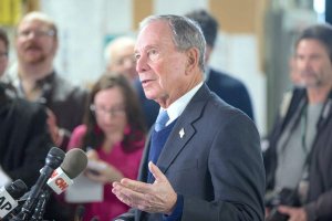 Former New York City Mayor Michael Bloomberg speaks with the media after touring the W.H. Bagshaw Company during an exploratory trip in a Jan. 29, 2019. (Scott Eisen/Getty Images)