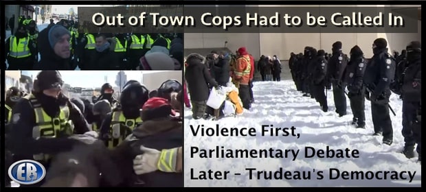 ER Editor: Word is that around 30% of the regular Ottawa police have quit with more avoiding duty through medical leave for ‘Covid’ or some such. Yesterday, someone asked several individual police the way to a particular street in Ottawa, and was told several times ‘I’m not from here’. The article below confirms that police from other jurisdictions were called in.
