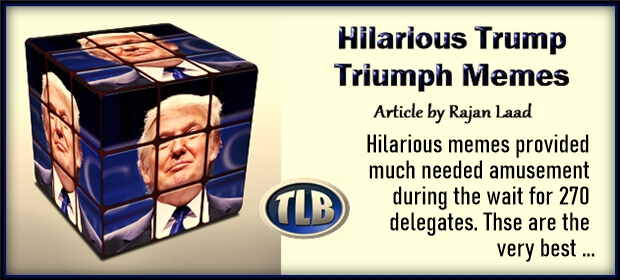 The above article (Hilarious Trump triumph memes) is republished here on TLB under “Fair Use” (see the TLB disclaimer below) with attribution to the author Rajan Laad, and americanthinker.com.