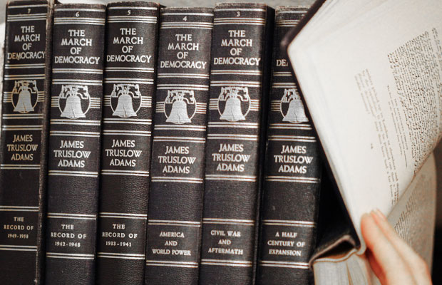 Tinkering around in an old bookstore in a small Texas town, we came across a set of old books on democracy; we got the first seven volumes of a set entitled, “The March of Democracy: A History of the United States“ written by James Truslow Adams — the guy who coined the term “The American Dream” — for a mere $20.