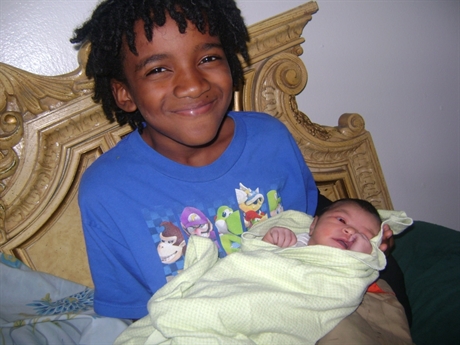 Deon holding his baby sister for the first time. Image supplied by family.