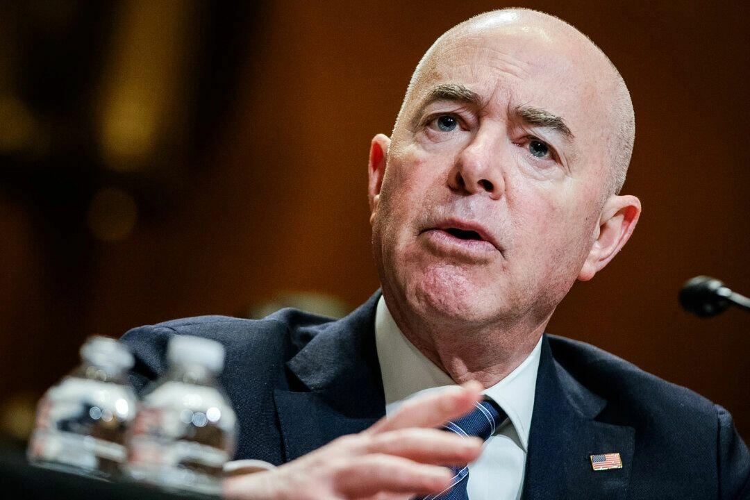 U.S. Secretary of Homeland Security Alejandro Mayorkas at the U.S. Capitol, on April 10, 2024. (Samuel Corum/Getty Images)