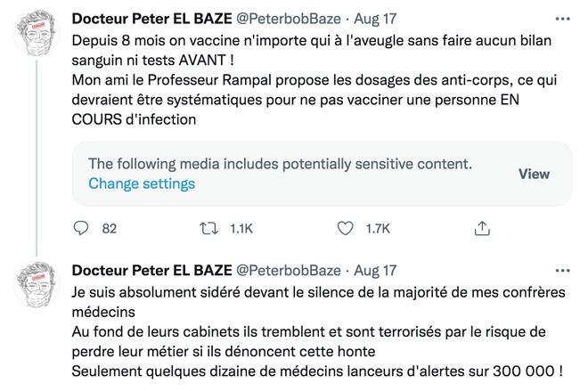 Here is a wide-angle perspective from a French doctor on Twitter about his own colleagues. The second comment is very instructive: