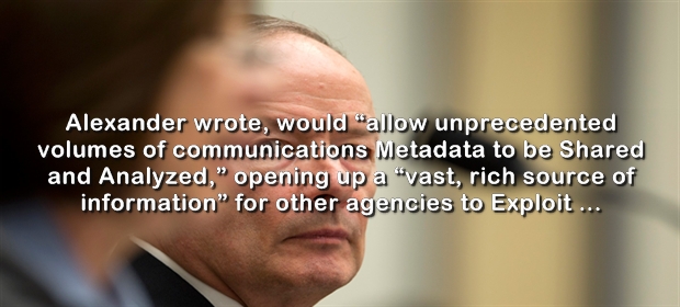 Alexander laid out his vision for what he described as a “communications metadata coalition” that would be led by the NSA. His idea was to build a sophisticated new tool that would grant other federal agencies access to “more than 50 existing NSA/CSS metadata fields contained in trillions of records” and handle “many millions” of new minimized records every day—indicating that a large number of Americans’ communications would be included.