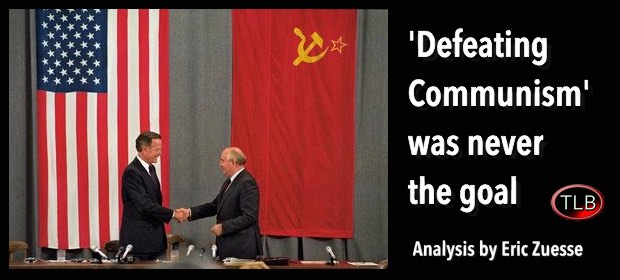 verify yourself from the evidence here) that US President G.H.W. Bush (and his team) lied through their teeth to Soviet President Mikhail Gorbachev (and his team) to end the Cold War on Russia’s side, when the US team were secretly determined never to end it on the US-NATO side until Russia itself is conquered. And this swindle continues today, and keeps getting worse and worse for Russians.