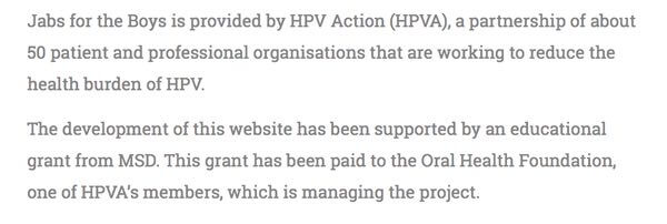 One may argue that the “educational grant” from MSD, aka Merck, is limited or “ring fenced,” but it is still commercial support from the manufacturers of the HPV vaccine administered via a member of HPVA.