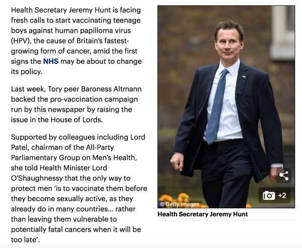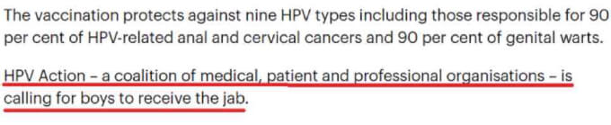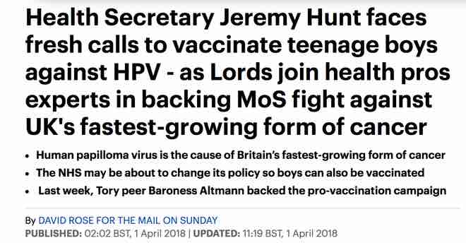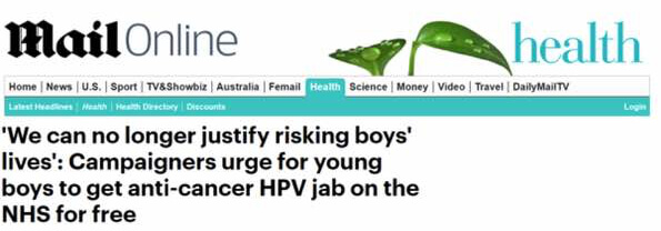 DAILY MAIL HPV ACTION CALLS FOR HPV VACCINE FOR BOYS—JUNE 2017