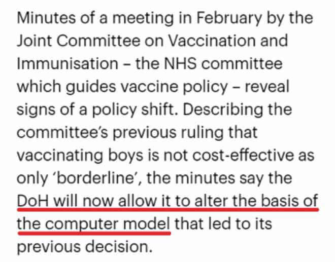 The TCF sued the JCVI in order to pressure it into recommending the HPV vaccine to boys; the HPVA also brought pressure to bear and was allowed privileged access (JCVI Minute of the meeting on 04 October 2017 Item 24) to an important public health body – Public Health England – in order to press their influence. They were even granted access to important unpublished research (JCVI Minute of the meeting on 04 October 2017 Item 24). As far as I am aware, no campaigners that had an opposite view to TCF and HPVA were afforded the same privileges.