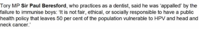 Sir Paul Beresford MP has also called for the introduction of the HPV vaccine: