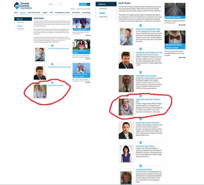 TCF— OUR TEAM: PROF FRAZER (CIRCLED LEFT) IS REMOVED FROM CURRENT MEMBERS (RIGHT)