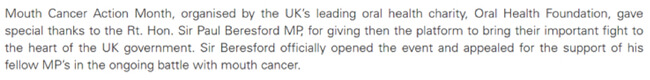 ORAL HEALTH FOUNDATION CAMPAIGN SUPPORTED BY UK MP