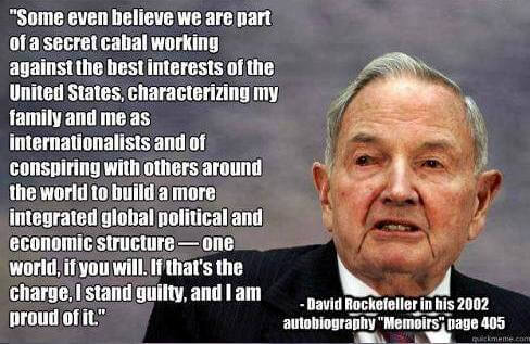 David Rockefeller: We are grateful to the Washington Post, the New York Times, Time Magazine and other great publications whose directors have attended our meetings and respected their promises of discretion for almost forty years. It would have been quite impossible for us to develop our plan for the world if we had been subjected to the lights of publicity during those years. But, now that the world is more sophisticated, it is prepared to march towards a world government and accept the supranational sovereignty of an intellectual and financial elite, which is surely preferable to the national autodetermination practiced in past centuries…