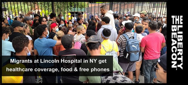 Hundreds of migrants line up at NYC hospital for healthcare, food, free phones