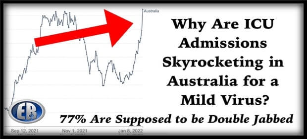 ER Editor: Note the alleged % of the population who are double-vaccinated in Australia. (We have learned not to trust official vaccination rates or official anything, for that matter.) The Daily Sceptic is a very good site but doesn’t quite deal with the vaccine topic as aggressively as it should.